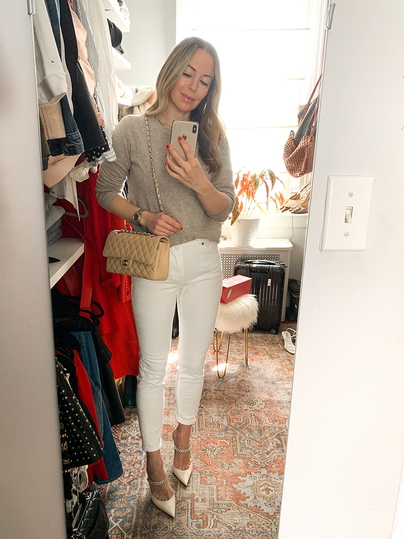 Loving the white jeans and natural colored sweater. I love that you’re into high end style but also into everyday more affordable brands such as Everlane. Hang in there these next few weeks!