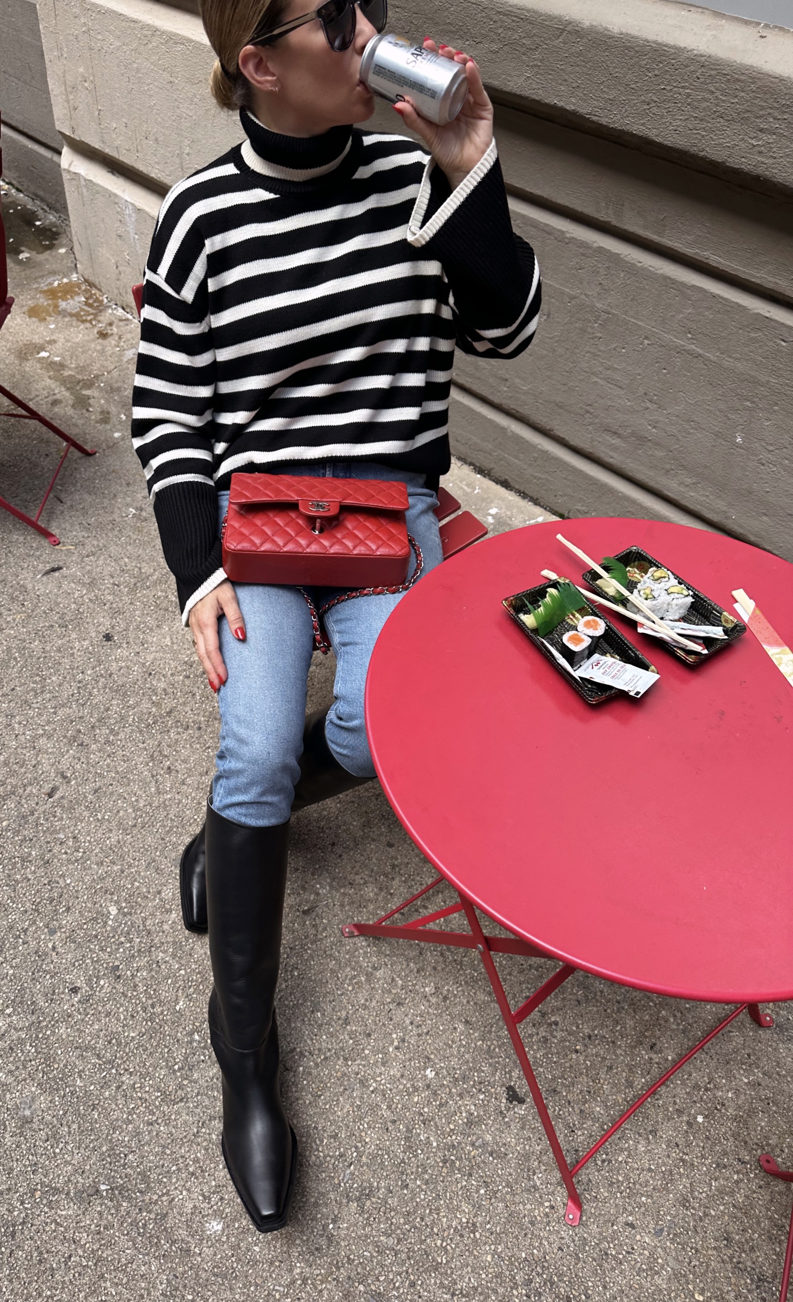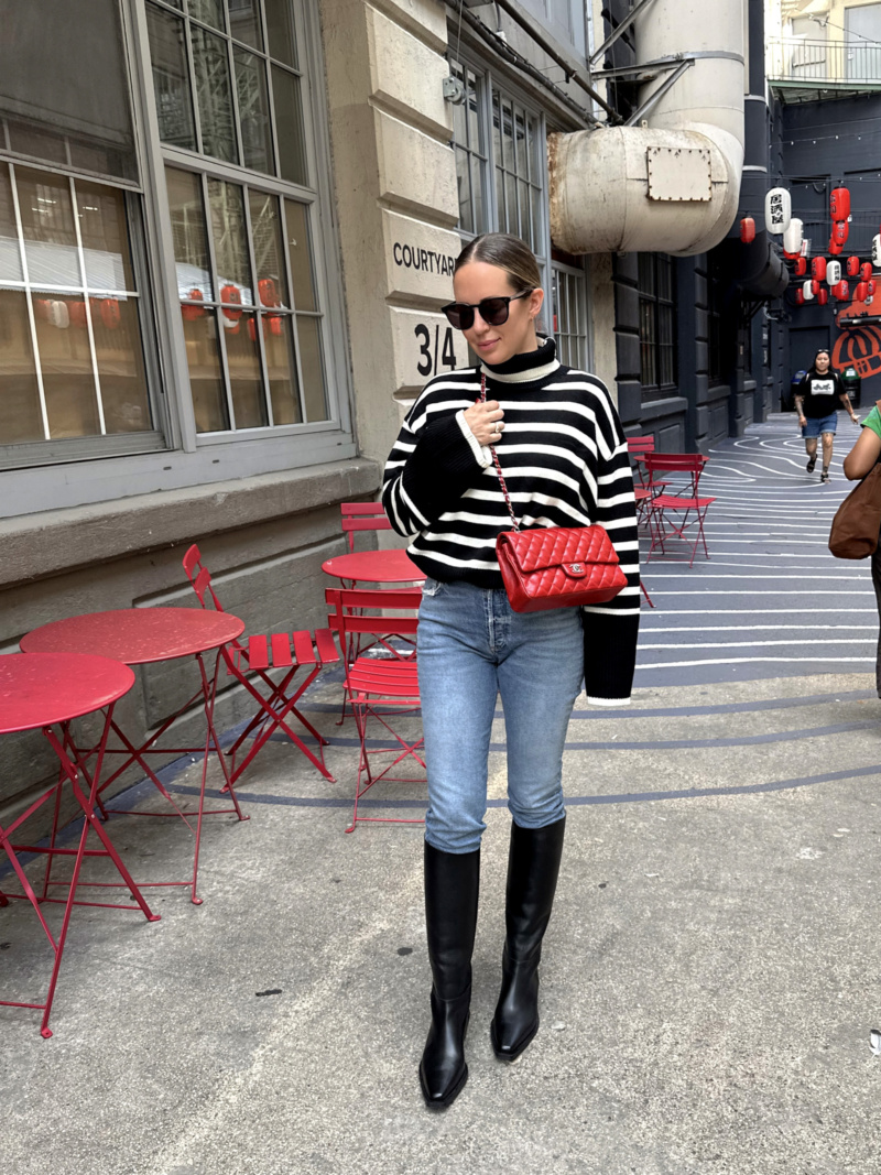 Denim: AGOLDE Riley (wearing my usual denim size) | Sweater: Moon River (in a M) | Boots: Proenza Bronco
