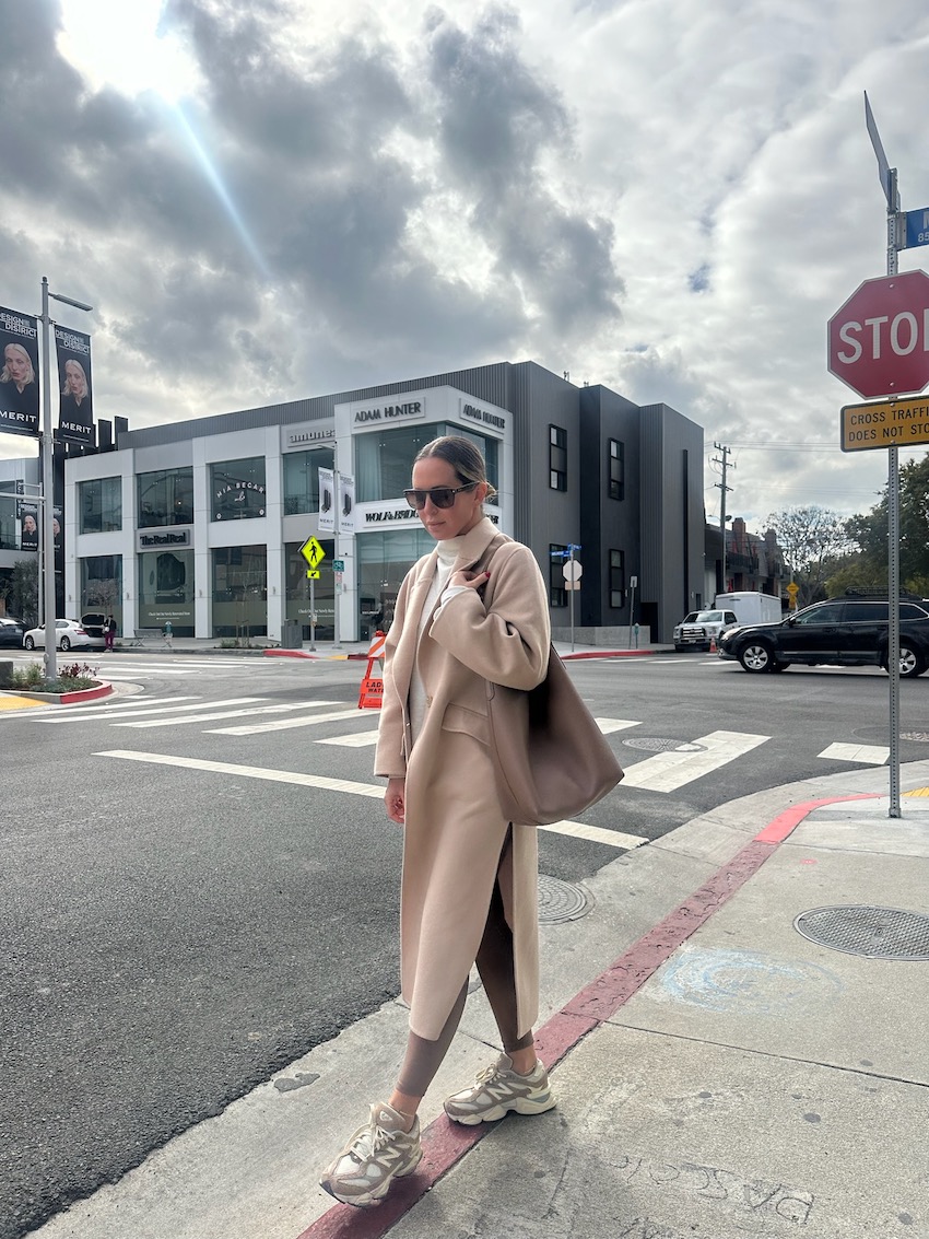 Handbag | Coat: Older H&M | Leggings: Varley (TTS) | Sweatshirt: Varley | Sneaker: New Balance 9020