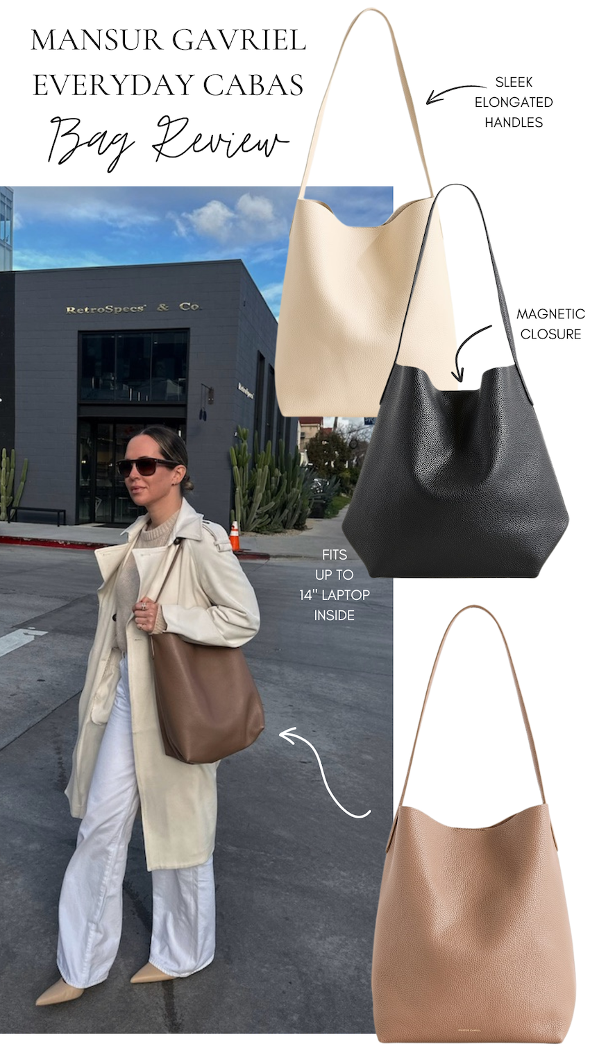 One of the most requested topics in my DMs has been to review my Mansur Gavriel Everyday Cabas tote. Spoiler alert: it’s been my most worn handbag in the last two months, and has only gotten better with wear.