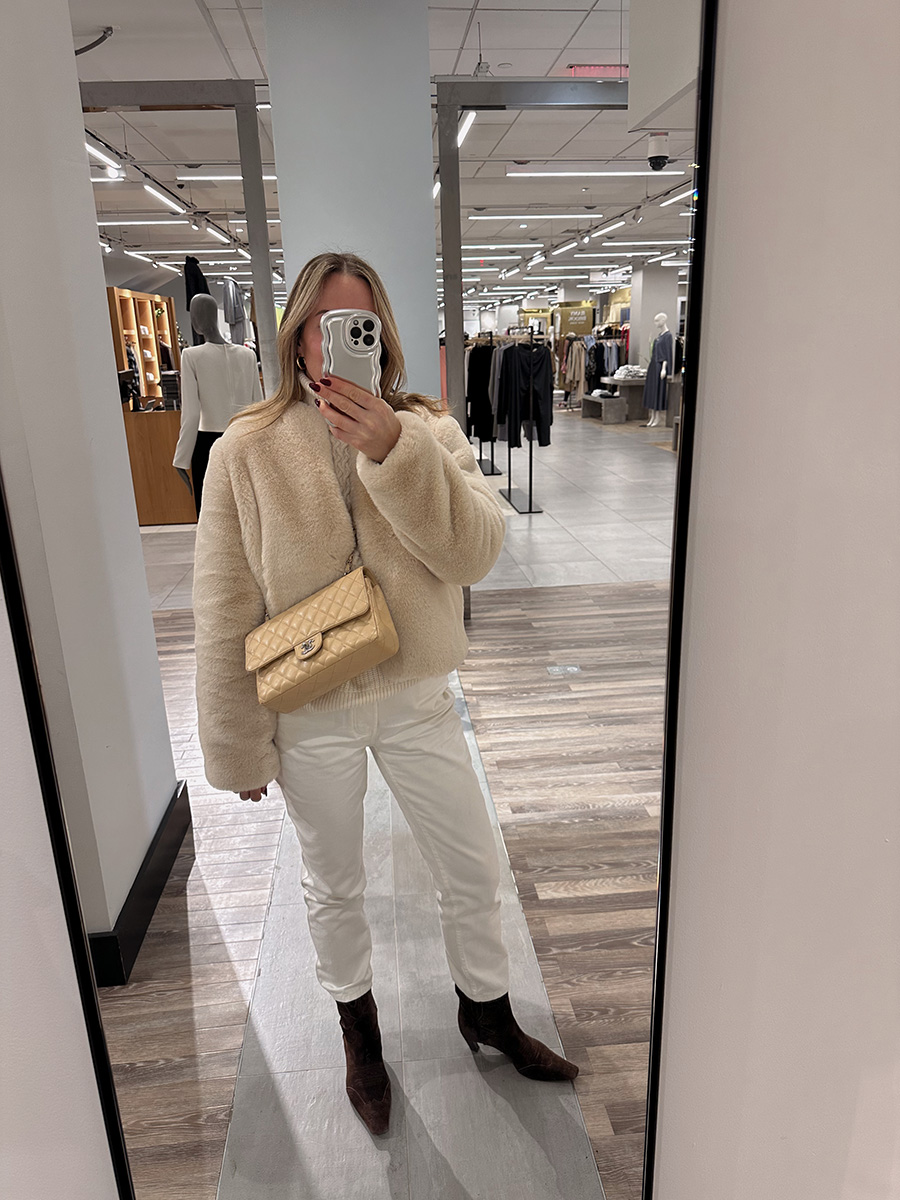 Here, I kept it streamlined with various tones and textures of the same color palette. There’s just something so pleasing about it, and while I find that the black pops (above) add some edge, this one feels more luxurious. I’m pretty over the term ‘quiet luxury,’ but if I were to use it one last time, it would feel appropriate here. I can picture Siobhan Roy from Succession wearing an outfit similar to this. Hers would probably be from The Row, so one could call this a look for less. If we were talking about NYC neighborhoods, the above feels a little more downtown, whereas this one is more uptown.