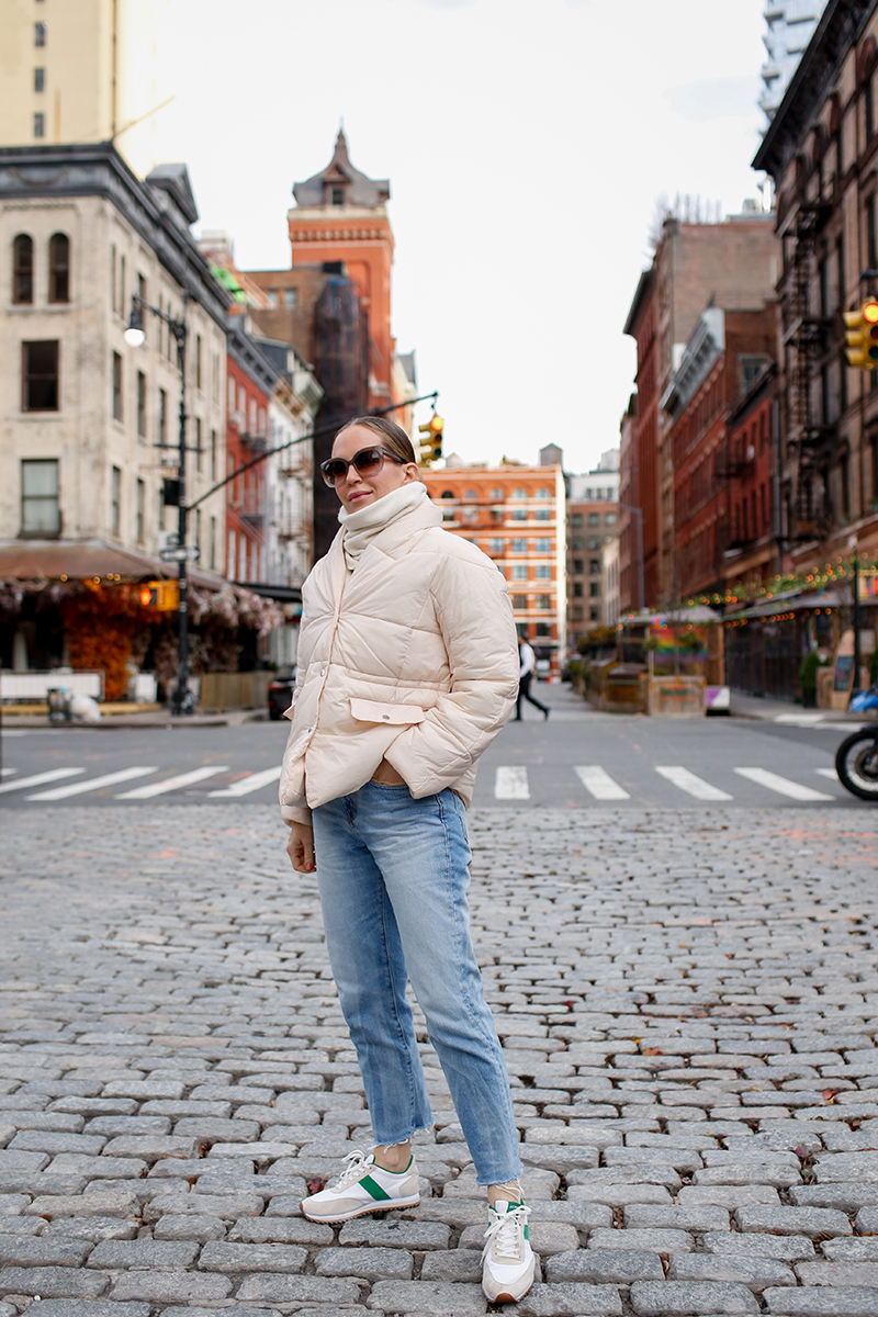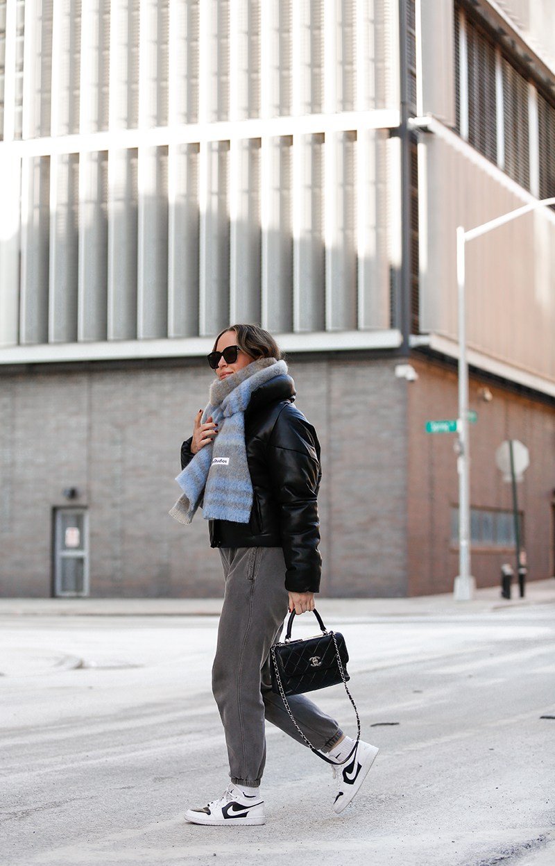 Bubble Coat: Apparis (comes in many colors, wearing a small) – use code HELENAXAPPARIS for 20% off | Sweatpants: Sundry (similar here) | Socks: Nike | Sunglasses: Colors in Optics | Bag: Chanel Trendy (find my review here) | Sneakers: Nike Low Top Panda