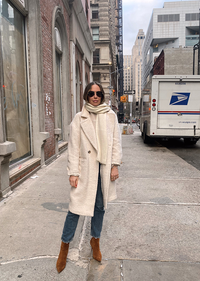 Coat: Billie the Label via Verishop (wearing a small, also comes in this cream color) | Denim: AGolde ‘Riley’ | Boots: Steve Madden | Sunglasses: Celine (Amazon version here)